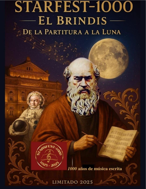 Estando ante tan monumental data (de 1,000) ¡y de tal cosa!, algo tan imprescindible como la música, la cuestión urgente no es dónde se “alcen las copas” para culminar, sino conmemorar pronto, porque justo esta fecha pertenece sólo al 2025. Mil años nunca se le han conmemorado a objeto histórico alguno. Que nos toque (a los que viven hoy, a todo el mundo) hacer brindis a tan antiquísimo origen, es una auténtica novedad y un privilegio que ninguna generación tuvo. Nada igual se tendrá en siglos.